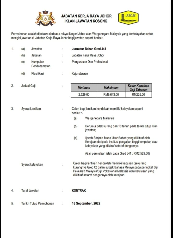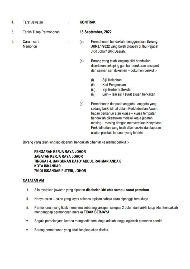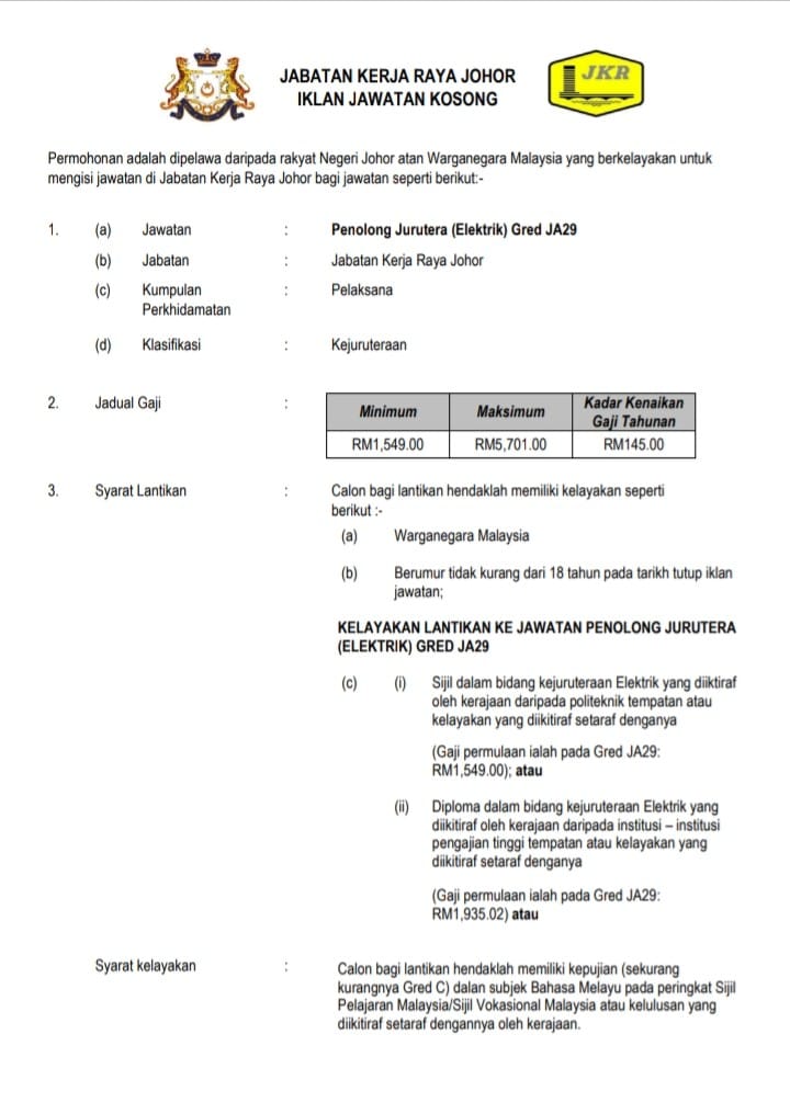 Iklan Jawatan Jabatan Kerja Raya Malaysia