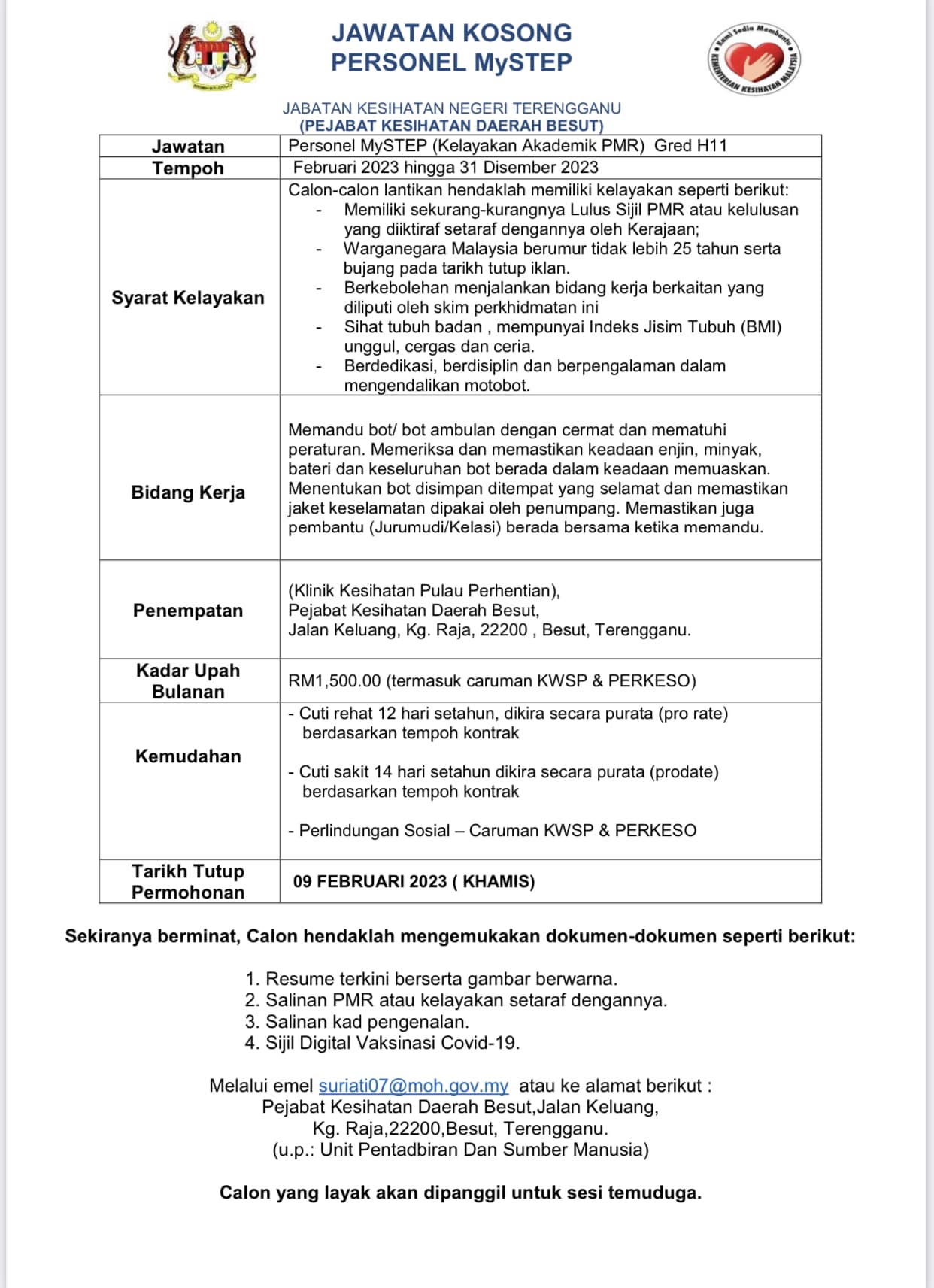 Iklan Jawatan Jabatan Kesihatan Negeri Terengganu