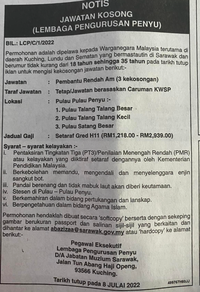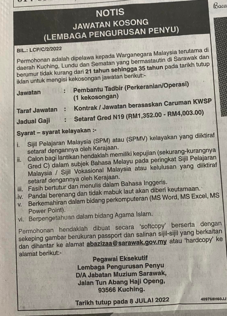 Iklan Jawatan Jabatan Muzium Sarawak