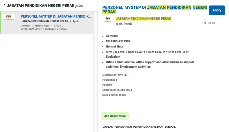 Iklan Jawatan Jabatan Pendidikan Negeri Perak