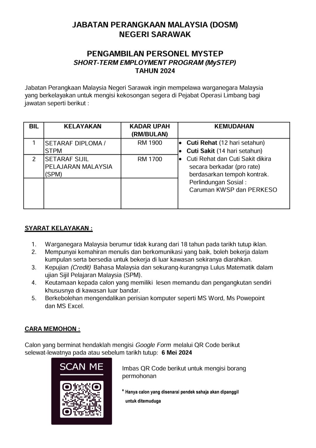 Iklan Jawatan Jabatan Perangkaan Malaysia Negeri Sarawak