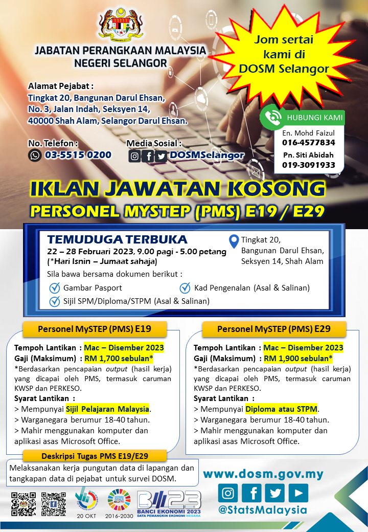 Iklan Jawatan Jabatan Perangkaan Malaysia Negeri Selangor