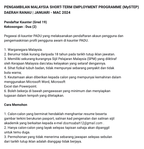Iklan Jawatan Jabatan Perangkaan Negeri Sabah
