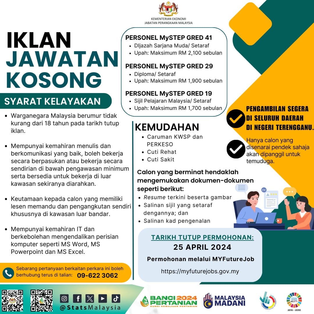 Iklan Jawatan Jabatan Perangkaan Negeri Terengganu