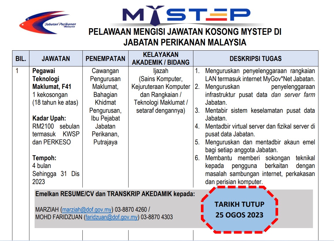 Iklan Jawatan Jabatan Perikanan Malaysia (DOF)