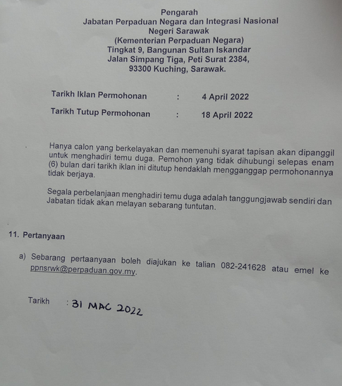 Iklan Jawatan Jabatan Perpaduan Negara Dan Integrasi Nasional (JPNIN)