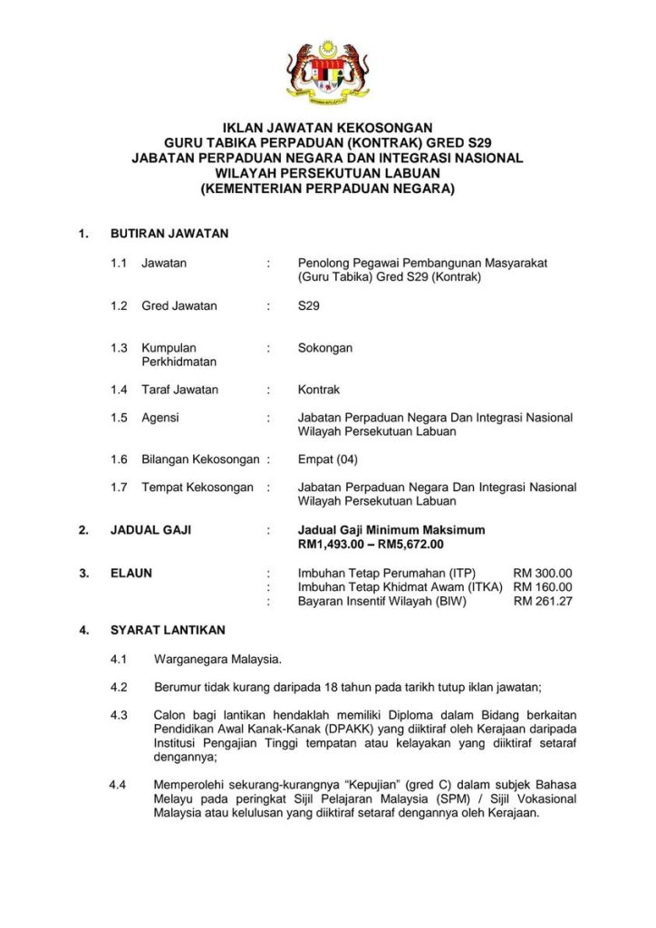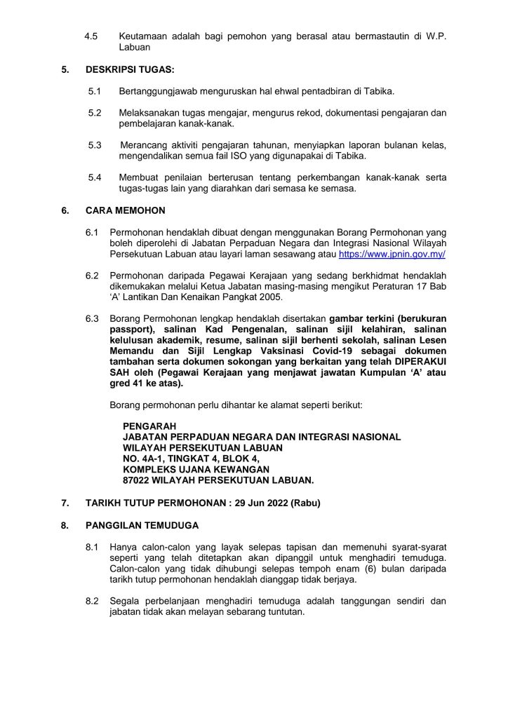 Iklan Jawatan Jabatan Perpaduan Negara & Integrasi Nasional (JPNIN)