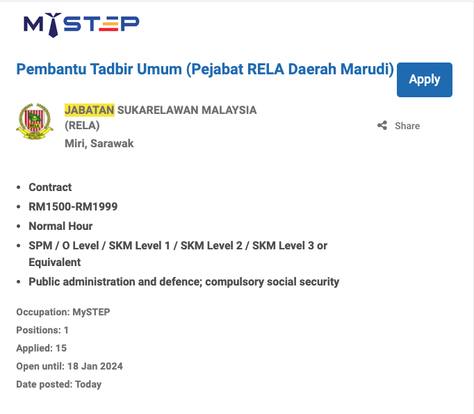 Iklan Jawatan Jabatan Sukarelawan Malaysia (RELA)