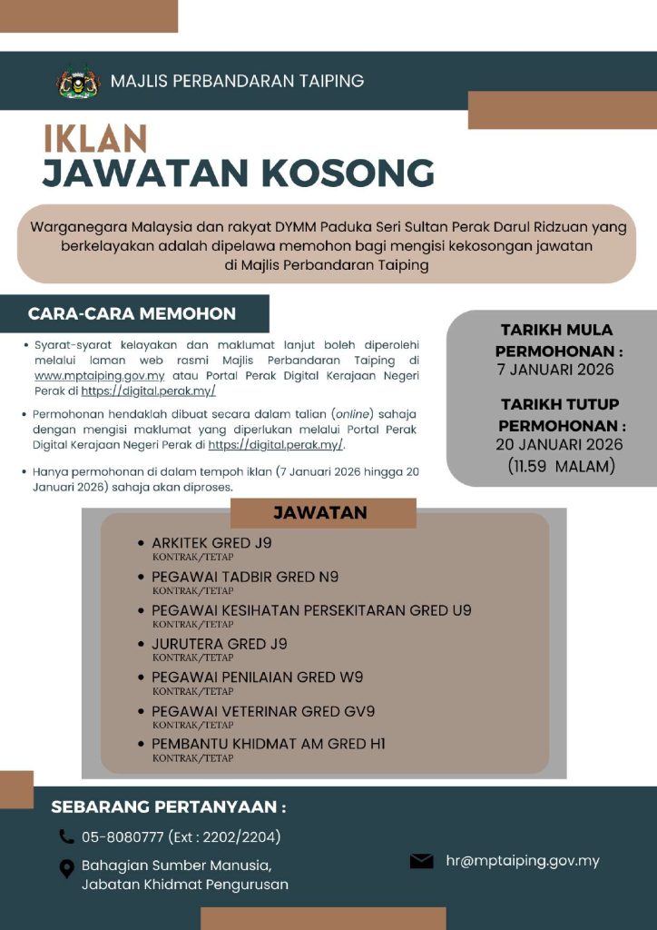 Iklan Jawatan Josong di Majlis Perbandaran Taiping