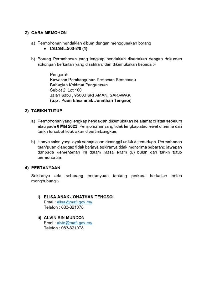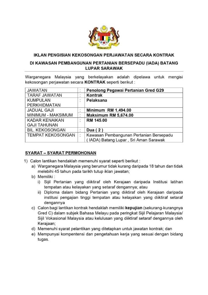 Iklan Jawatan Kawasan Pembangunan Pertanian Bersepadu (IADA)