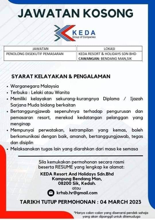 Iklan Jawatan KEDA Resort & Holidays Sdn Bhd