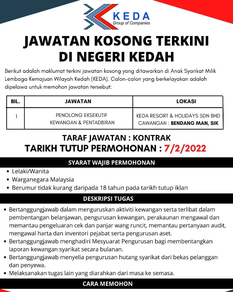Iklan Jawatan Lembaga Kemajuan Wilayah Kedah (KEDA)