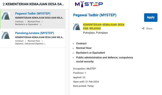 Iklan Jawatan Kementerian Kemajuan Desa & Wilayah