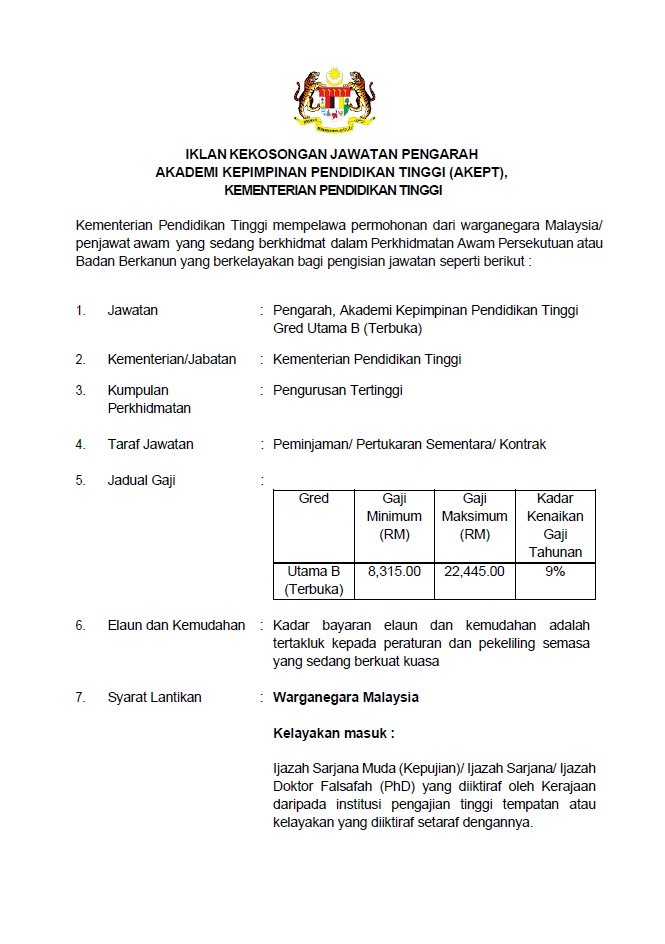 Iklan Jawatan Kementerian Pendidikan Malaysia (KPM)