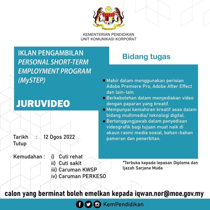 Jawatan Kosong Personel MySTEP Kementerian Pendidikan Malaysia (KPM)