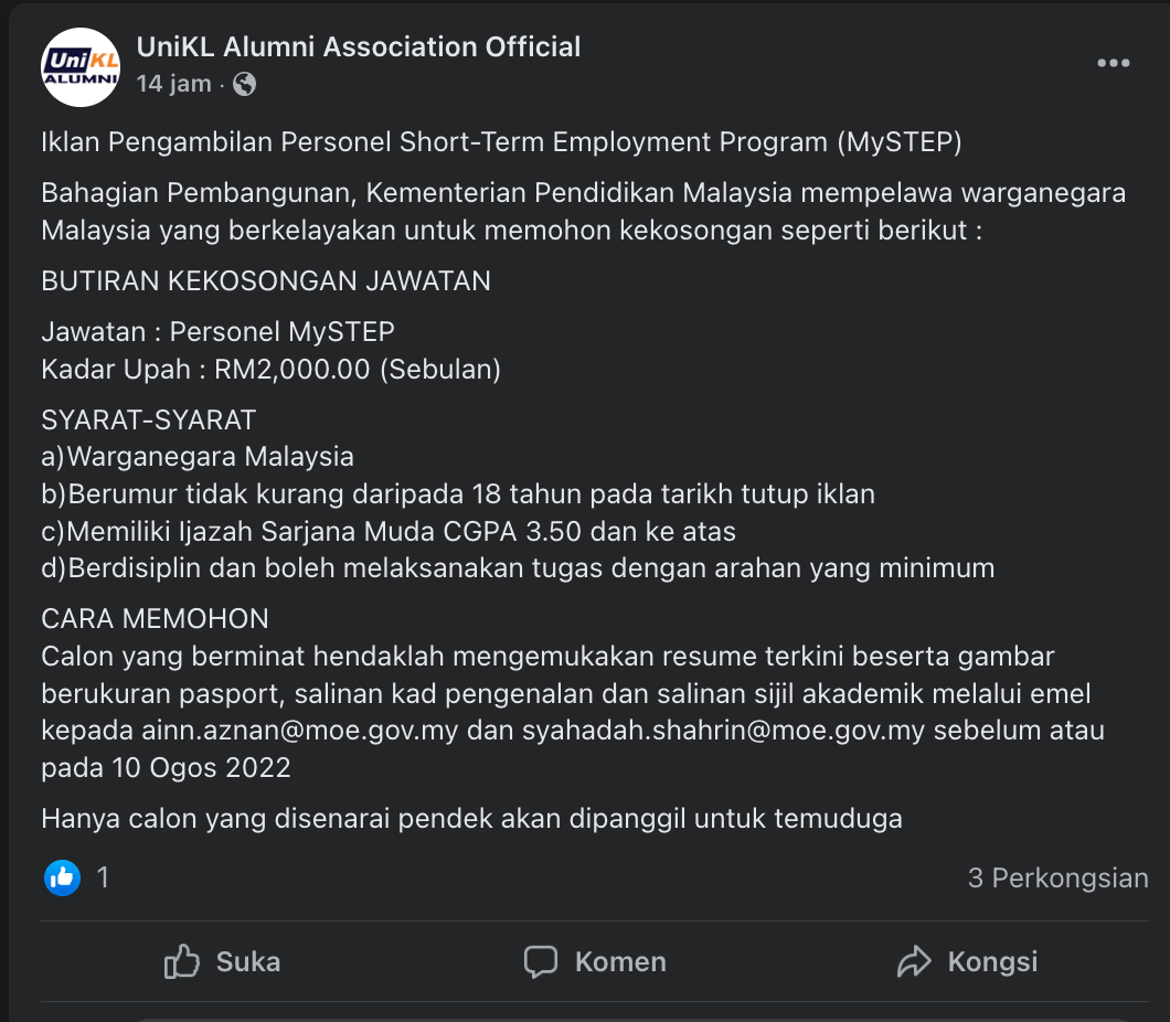 Iklan Jawatan Kementerian Pendidikan Malaysia