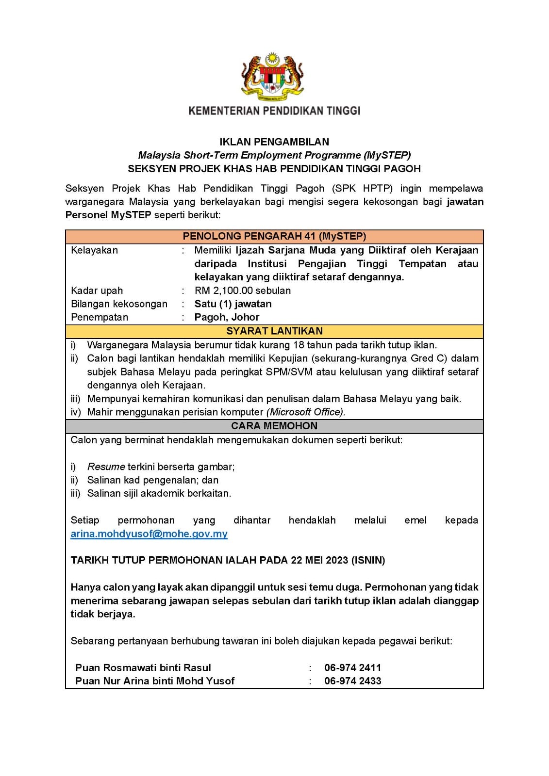 Iklan Jawatan Kementerian Pendidikan Tinggi (KPT)