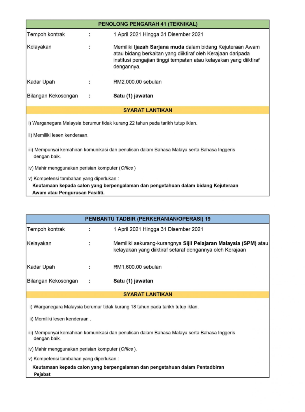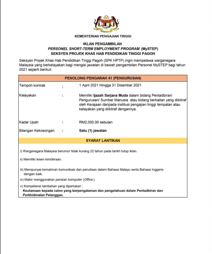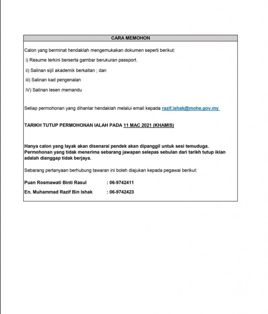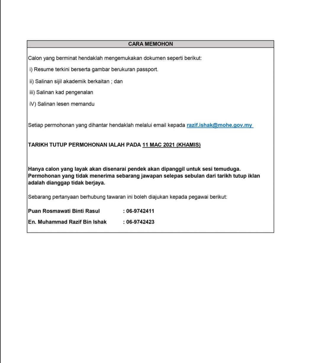 Iklan Jawatan Kementerian Pengajian Tinggi