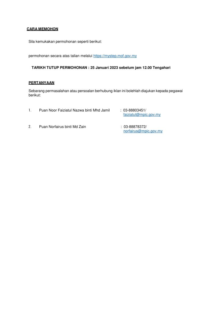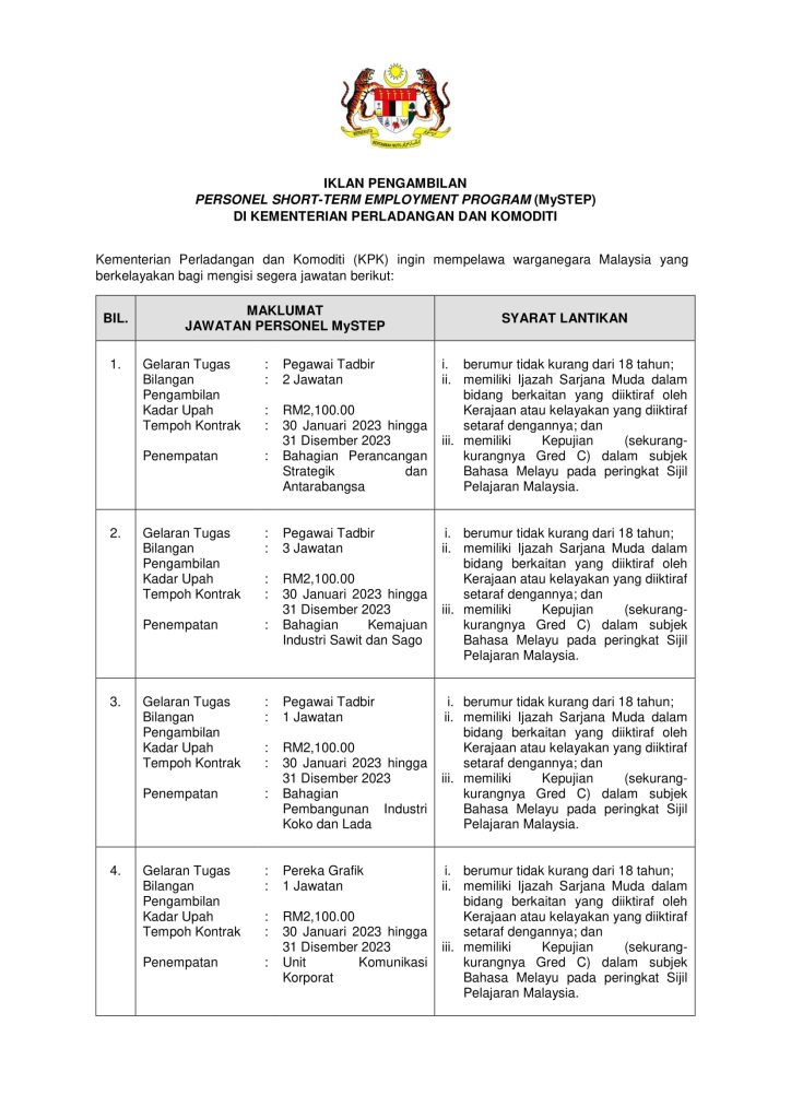 Iklan Jawatan Kementerian Perladangan Dan Komoditi