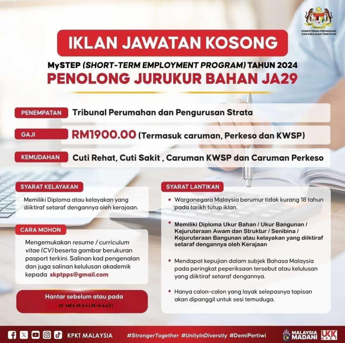 Iklan Jawatan Kementerian Perumahan & Kerajaan Tempatan (KPKT)