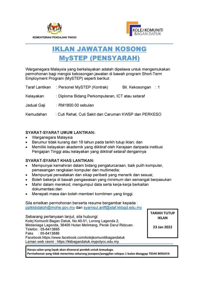 Iklan Jawatan Kolej Komuniti Bagan Datuk