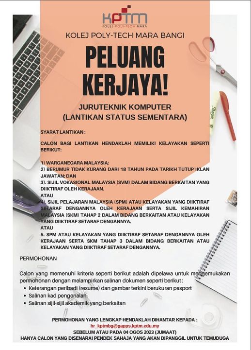 Iklan Jawatan Kolej Poly-Tech MARA (KPTM)