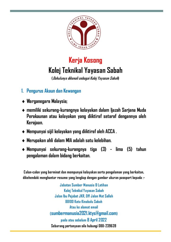 Iklan Jawatan Kolej Teknikal Yayasan Sabah