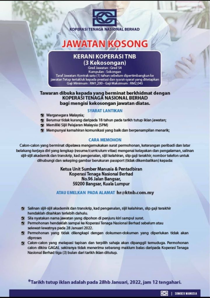 Iklan Jawatan Koperasi Tenaga Nasional Berhad