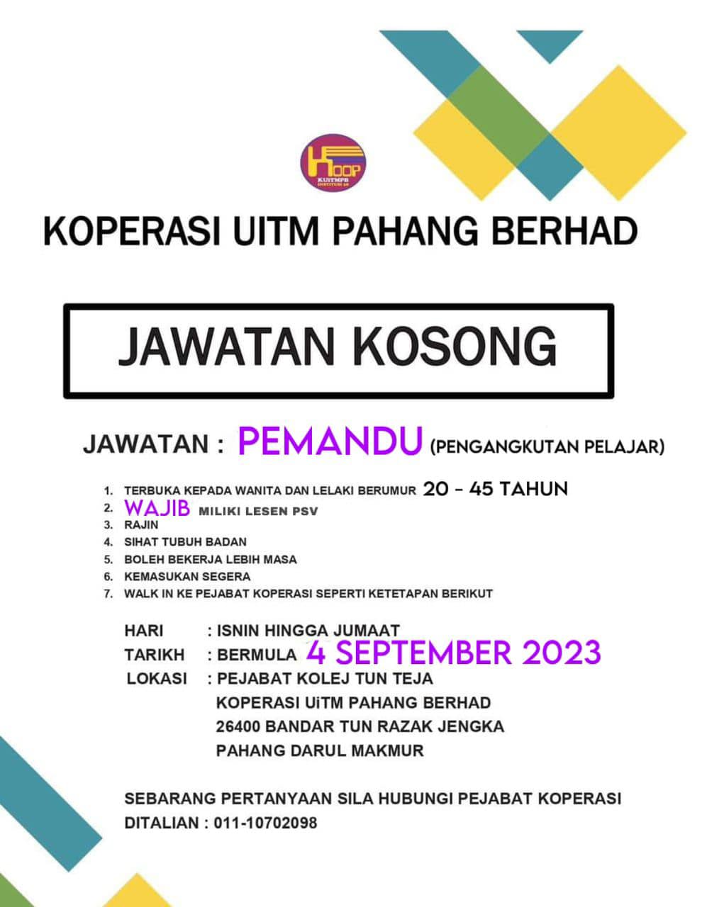 Iklan Jawatan Koperasi UiTM Pahang Berhad