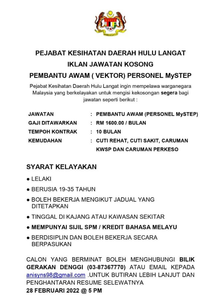 Iklan Jawatan Pejabat Kesihatan Daerah Hulu Langat