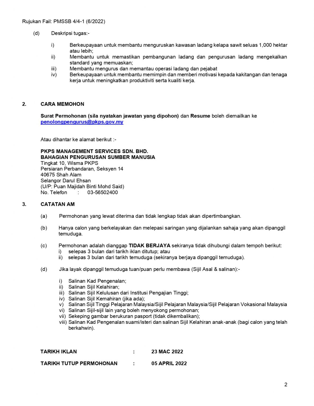 Iklan Jawatan Kosong Perbadanan Kemajuan Pertanian Selangor PKPS