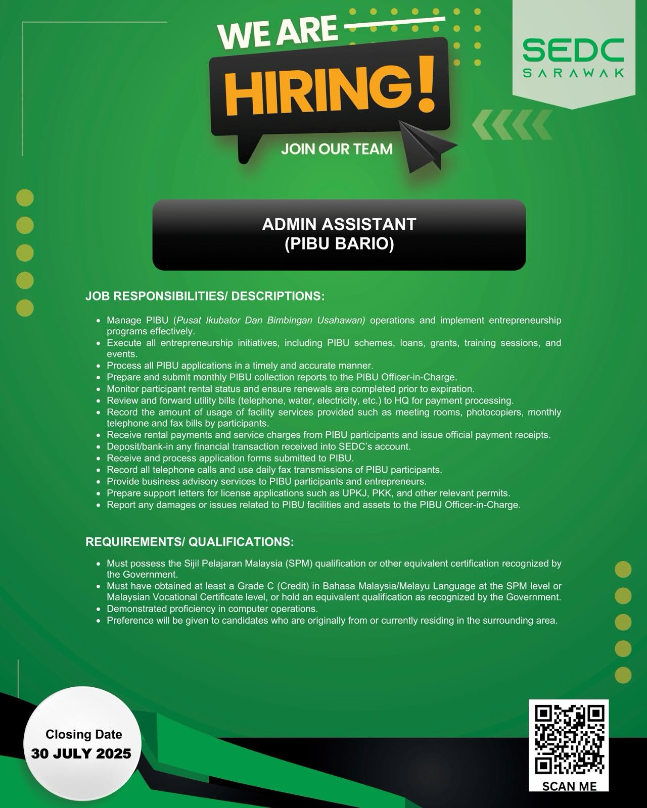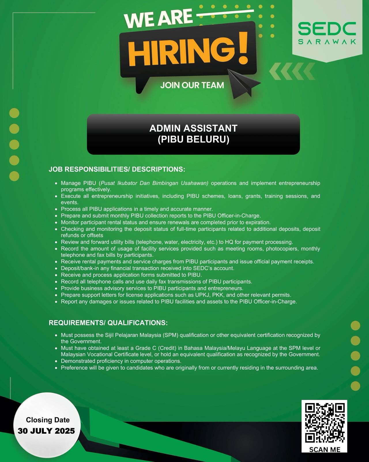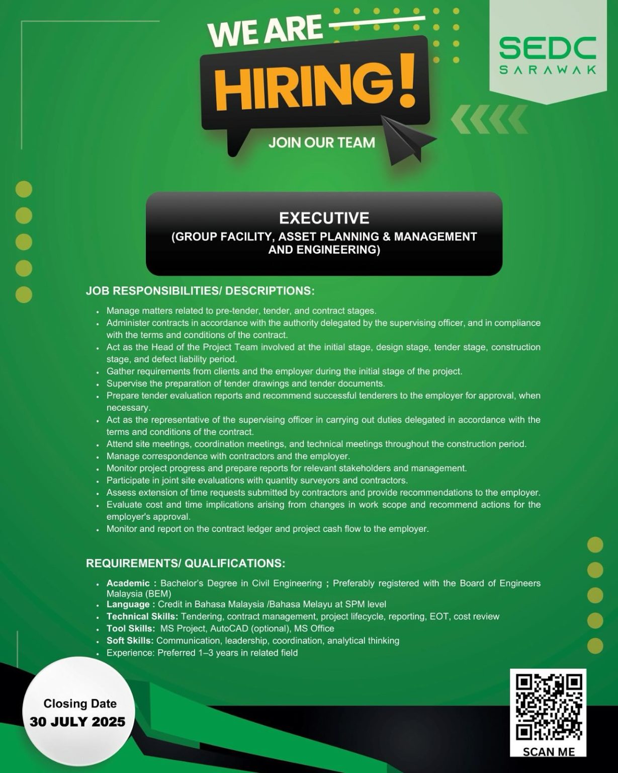 Iklan Jawatan Kosong Perbadanan Pembangunan Ekonomi Sarawak (SEDC)