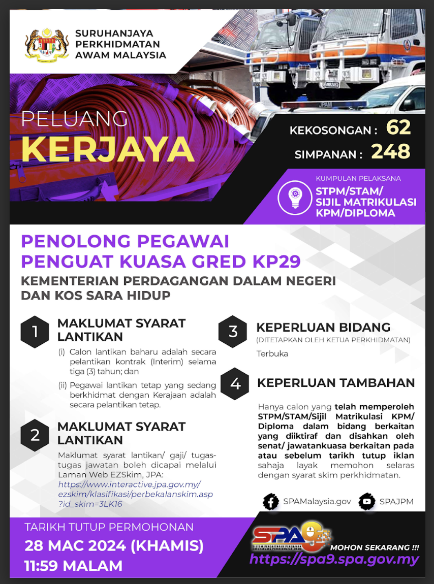 Iklan Jawatan Penolong Penguatkuasa KP29 KPDN
