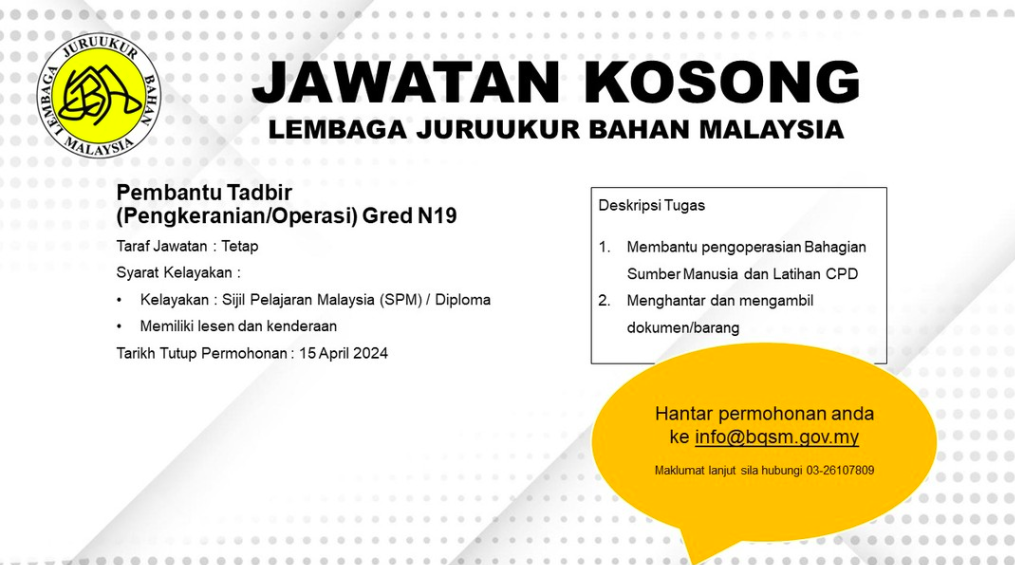 Iklan Jawatan Lembaga Juruukur Bahan Malaysia