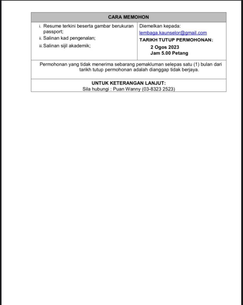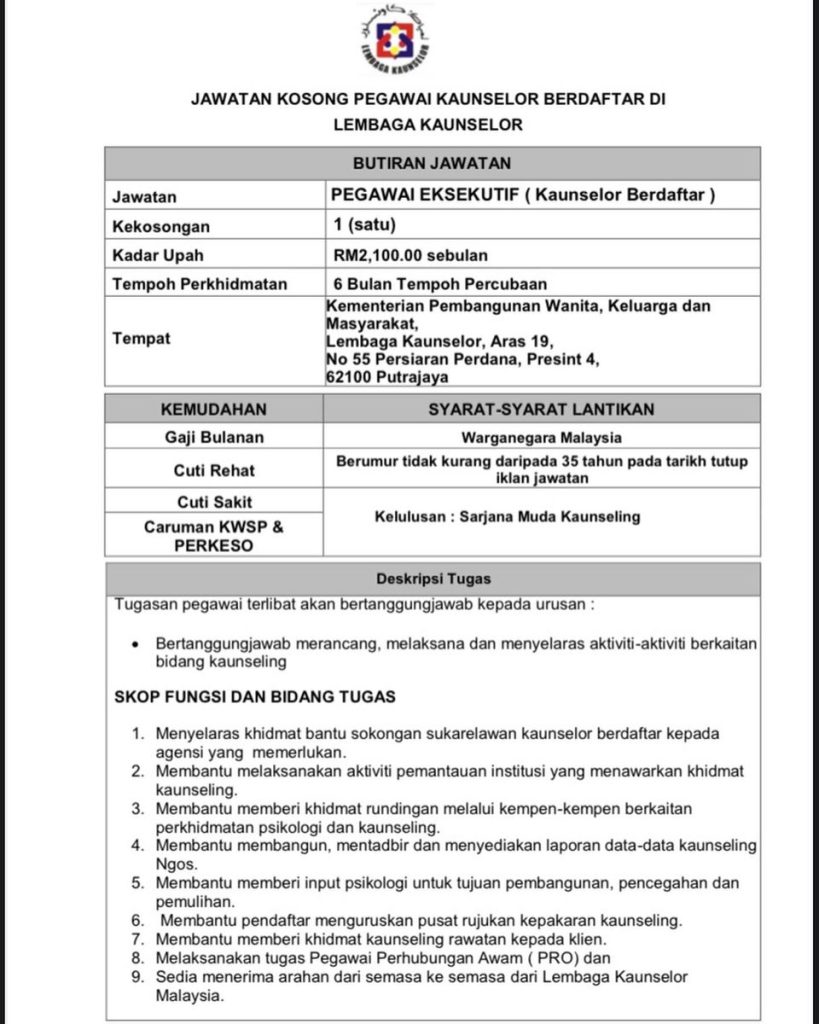 Iklan Jawatan Lembaga Kaunselor Malaysia