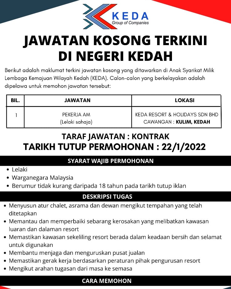 Iklan Jawatan Lembaga Kemajuan Wilayah Kedah (KEDA)