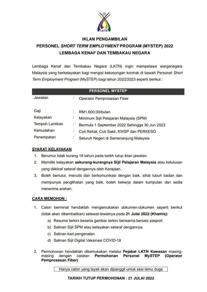 Iklan Jawatan Lembaga kenaf Dan Tembakau Negara (LKTN)