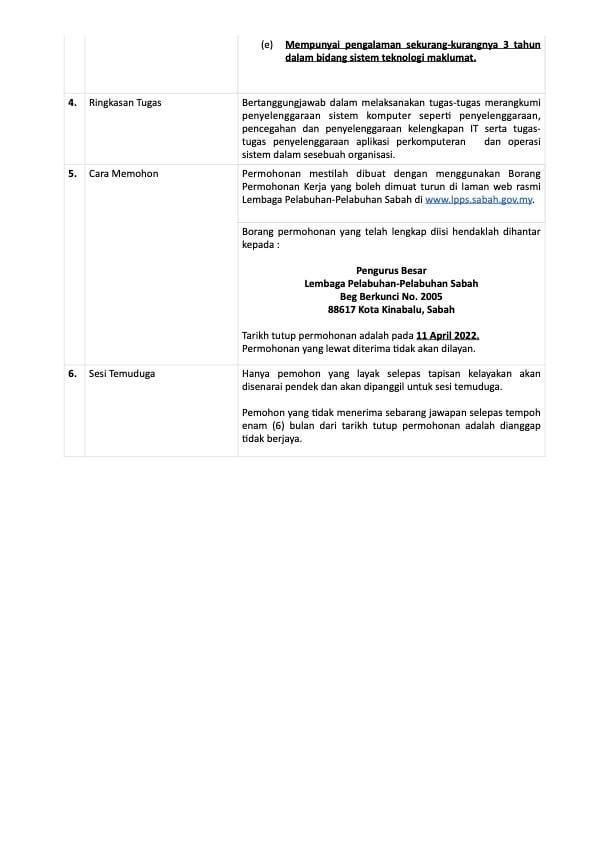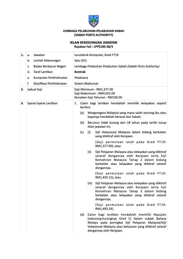 Iklan Jawatan Lembaga Pelabuhan-Pelabuhan Sabah