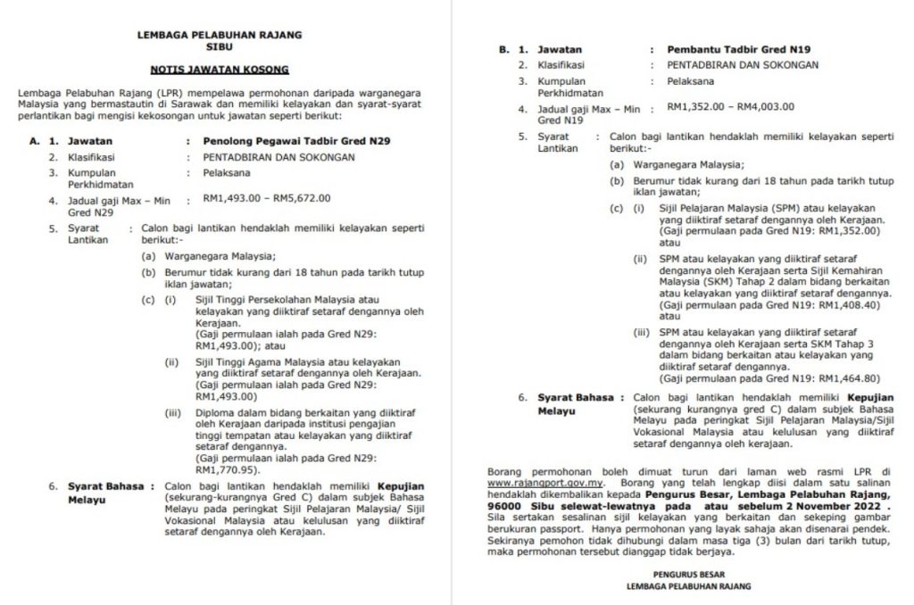 Iklan Jawatan Lembaga Pelabuhan Rajang