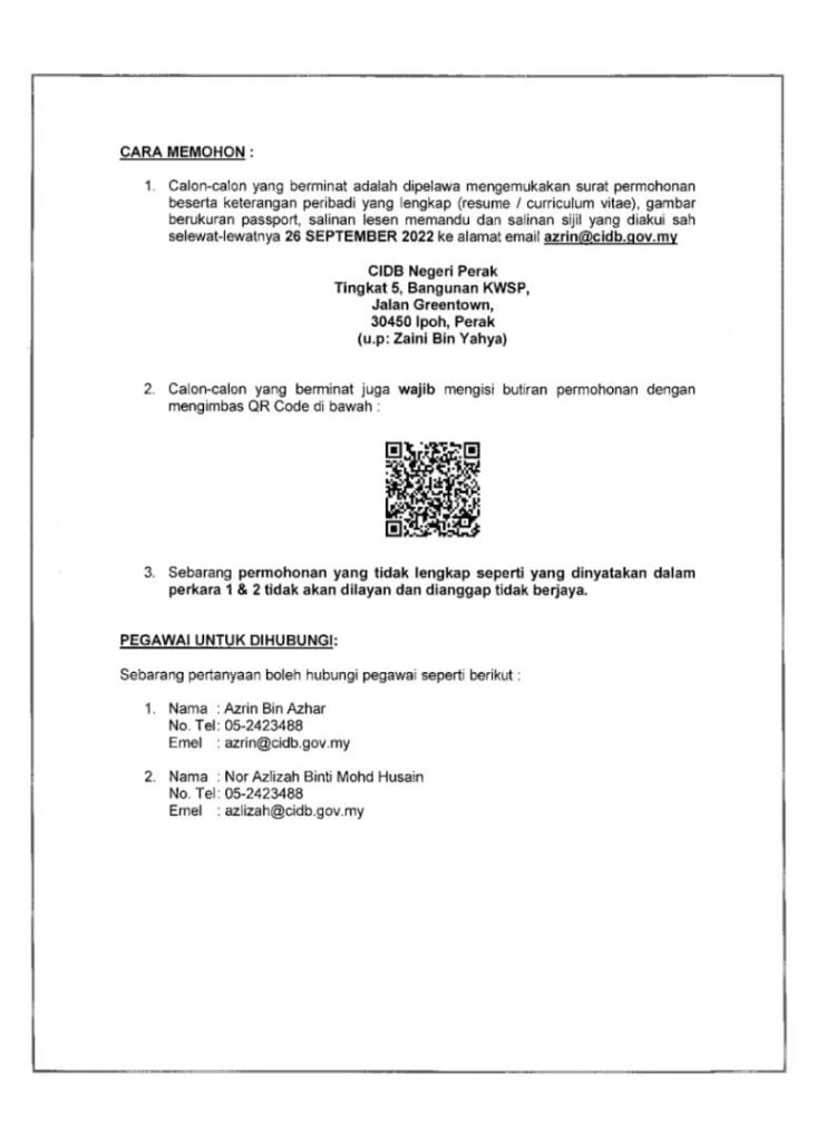 Iklan Jawatan Lembaga Pembangunan Industri Pembinaan Malaysia (CIDB)