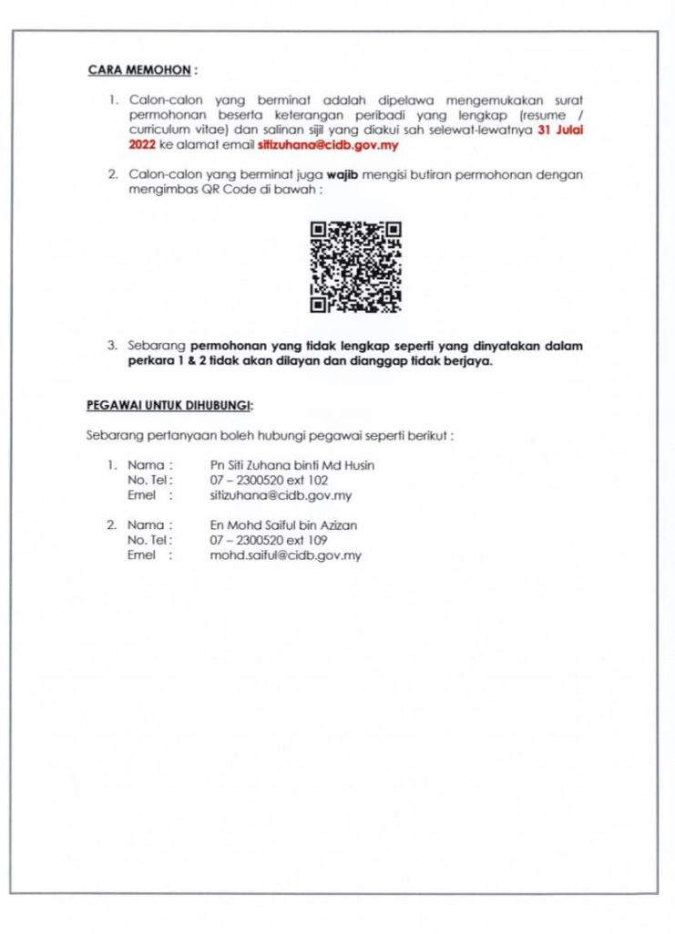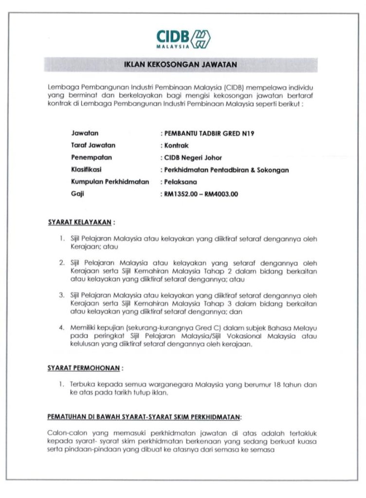 Iklan Jawatan Lembaga Pembangunan Industri Pembinaan Malaysia (CIDB)