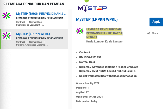 Iklan Jawatan Lembaga Penduduk Dan Pembangunan Keluarga Negara (LPPKN)