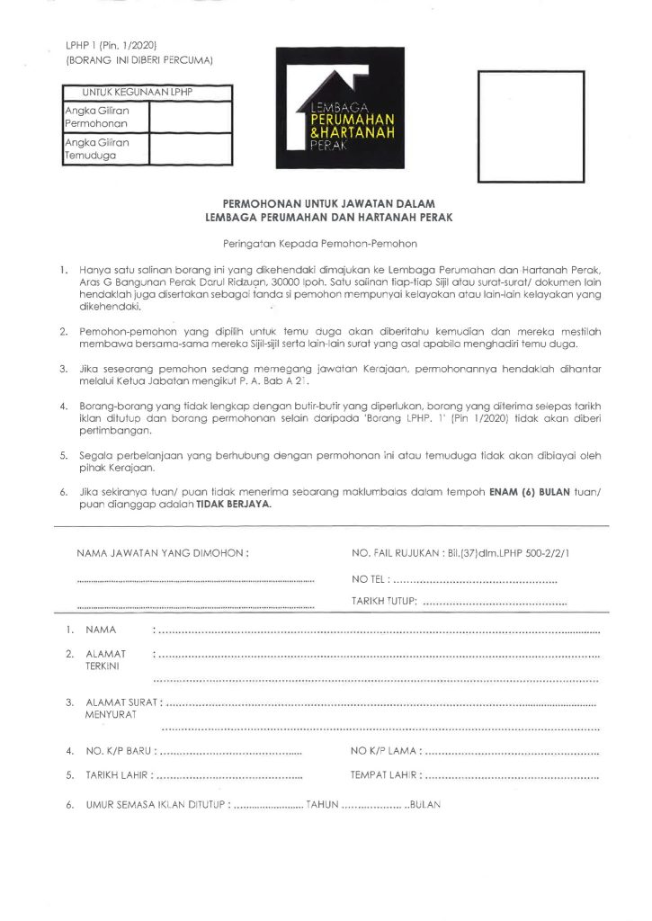 Iklan Jawatan Lembaga Perumahan Dan Hartanah Perak (LPHP)