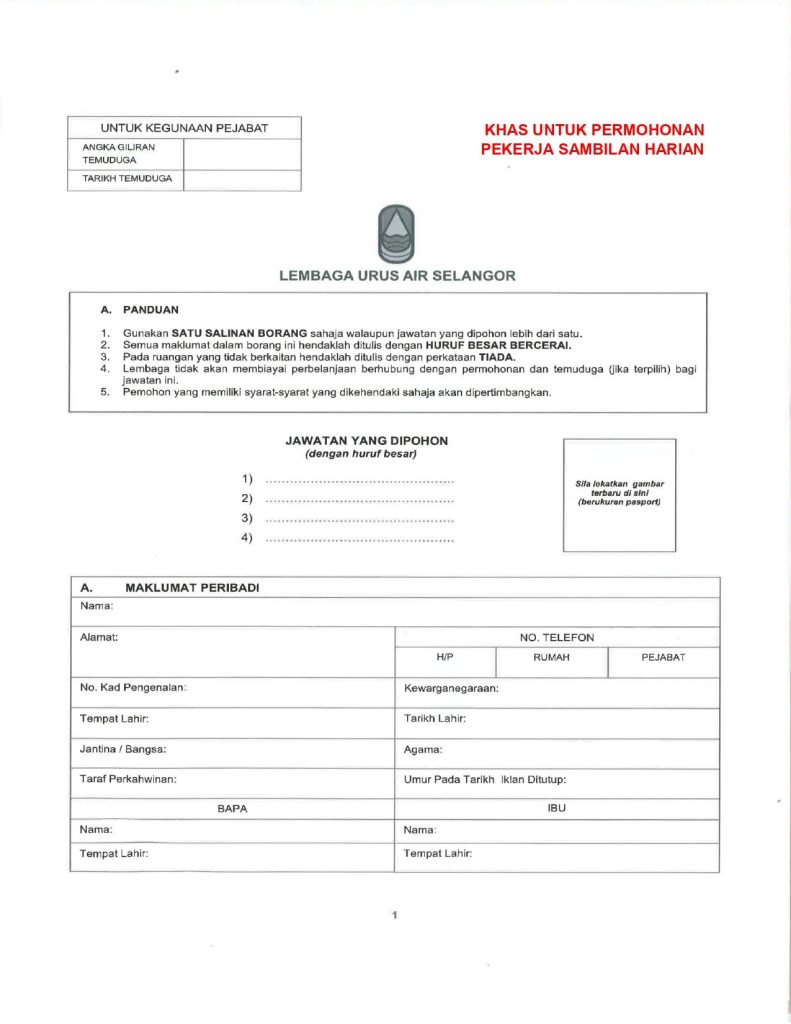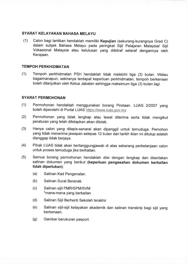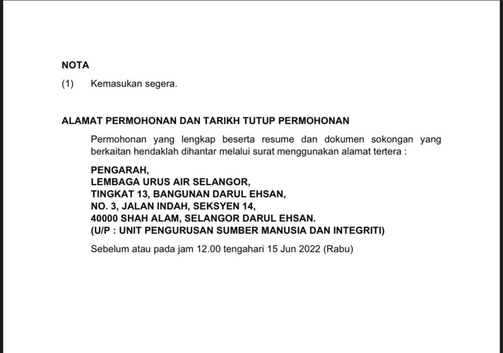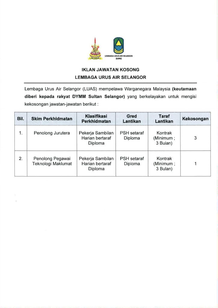 Iklan Jawatan Lembaga Urus Air Selangor (LUAS)