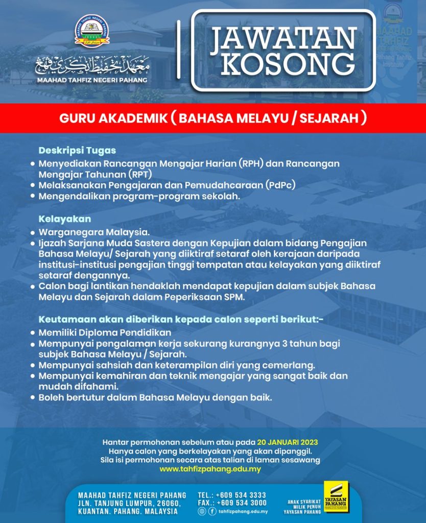 Iklan Jawatan Maahad Tahfiz Negeri Pahang