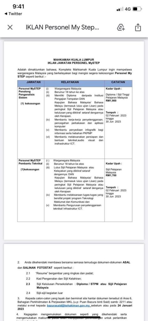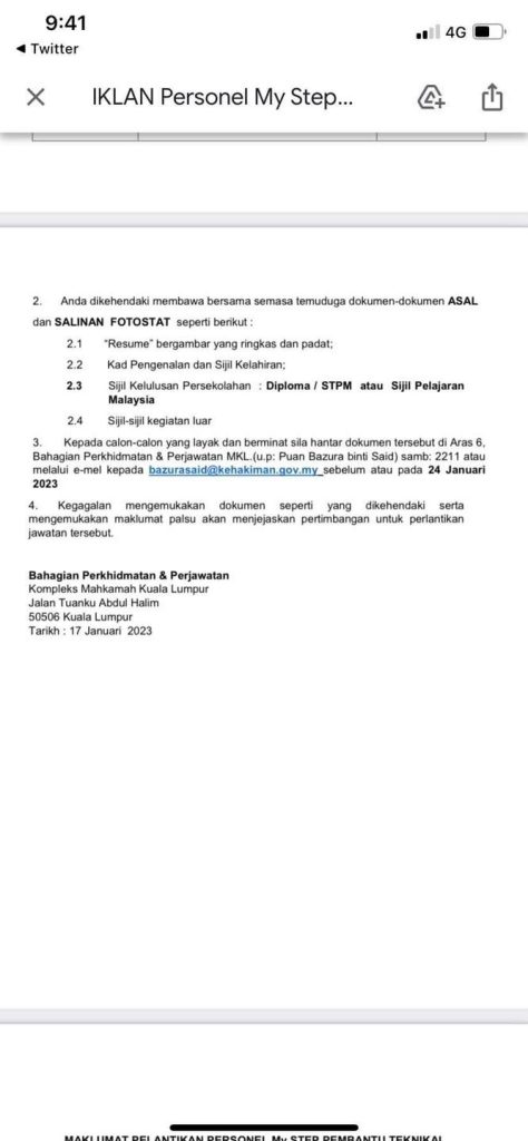 Iklan Jawatan Mahkamah Syariah Wilayah Persekutuan – MSWP