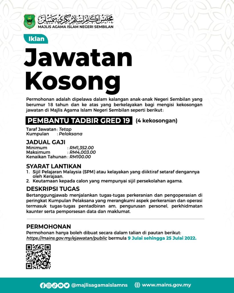 Iklan Jawatan Majlis Agama Islam Negeri Sembilan