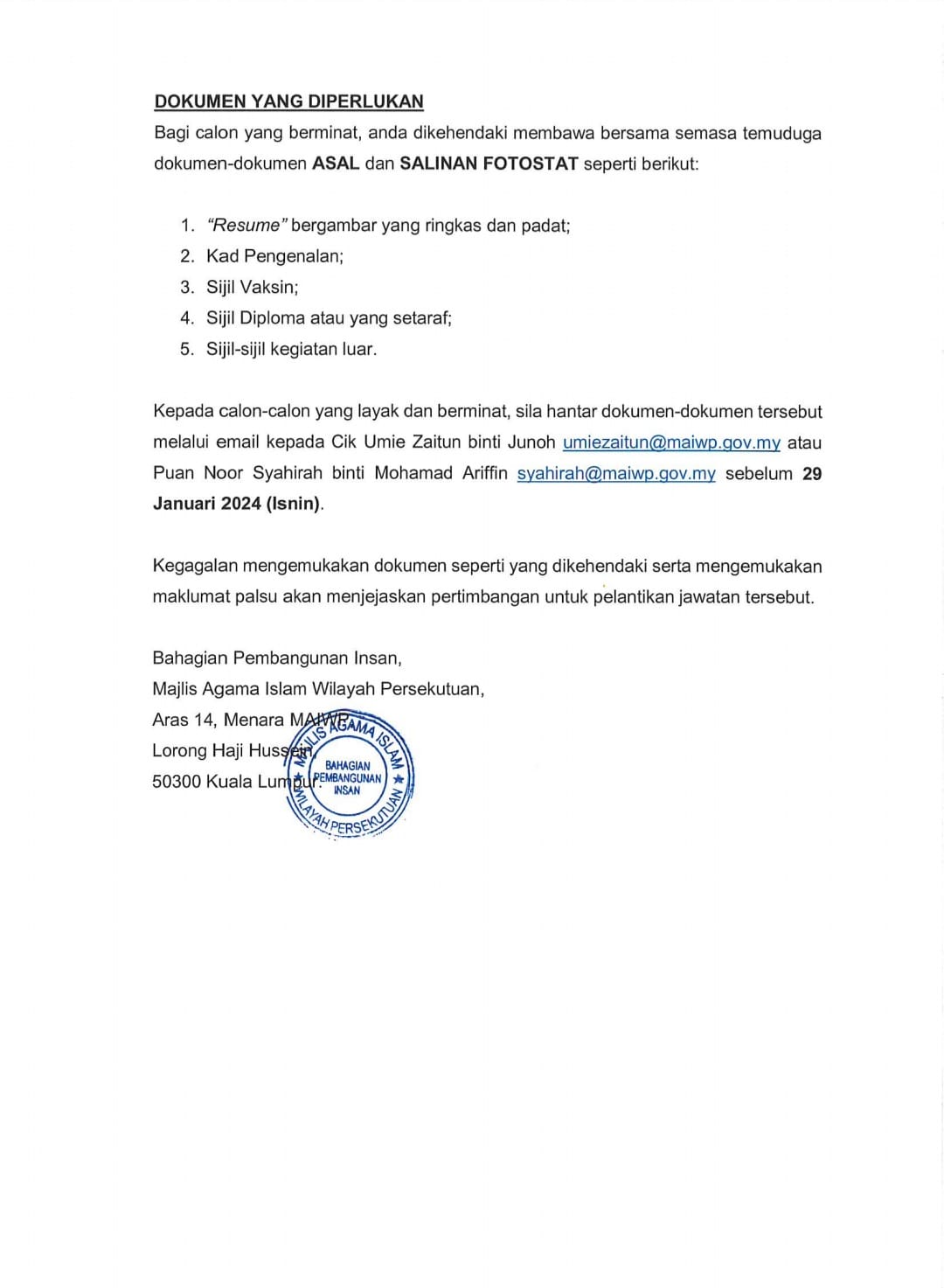 Iklan Jawatan Majlis Agama Islam Wilayah Persekutuan (MAIWP)