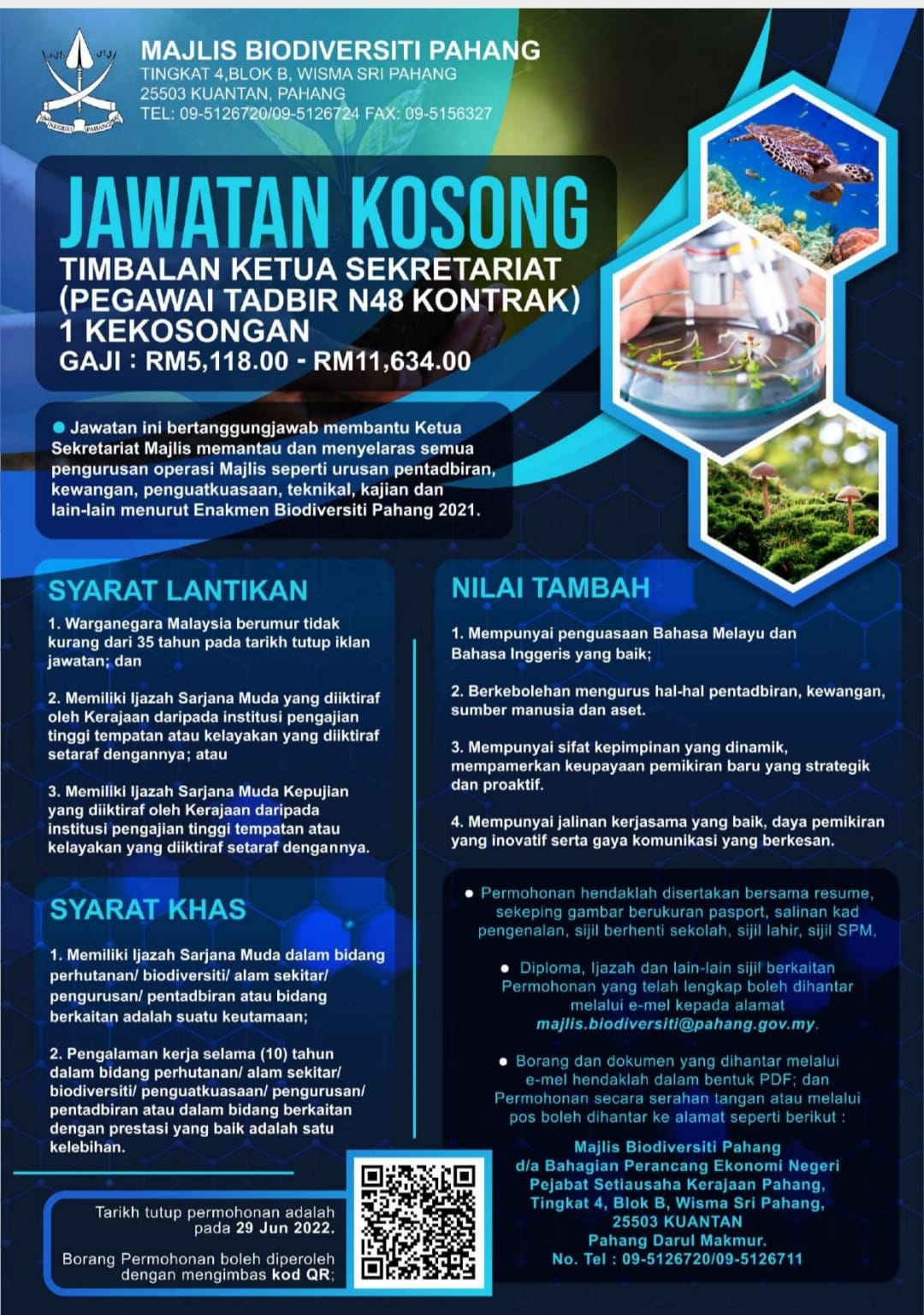 Iklan Jawatan Majlis Biodiversiti Pahang