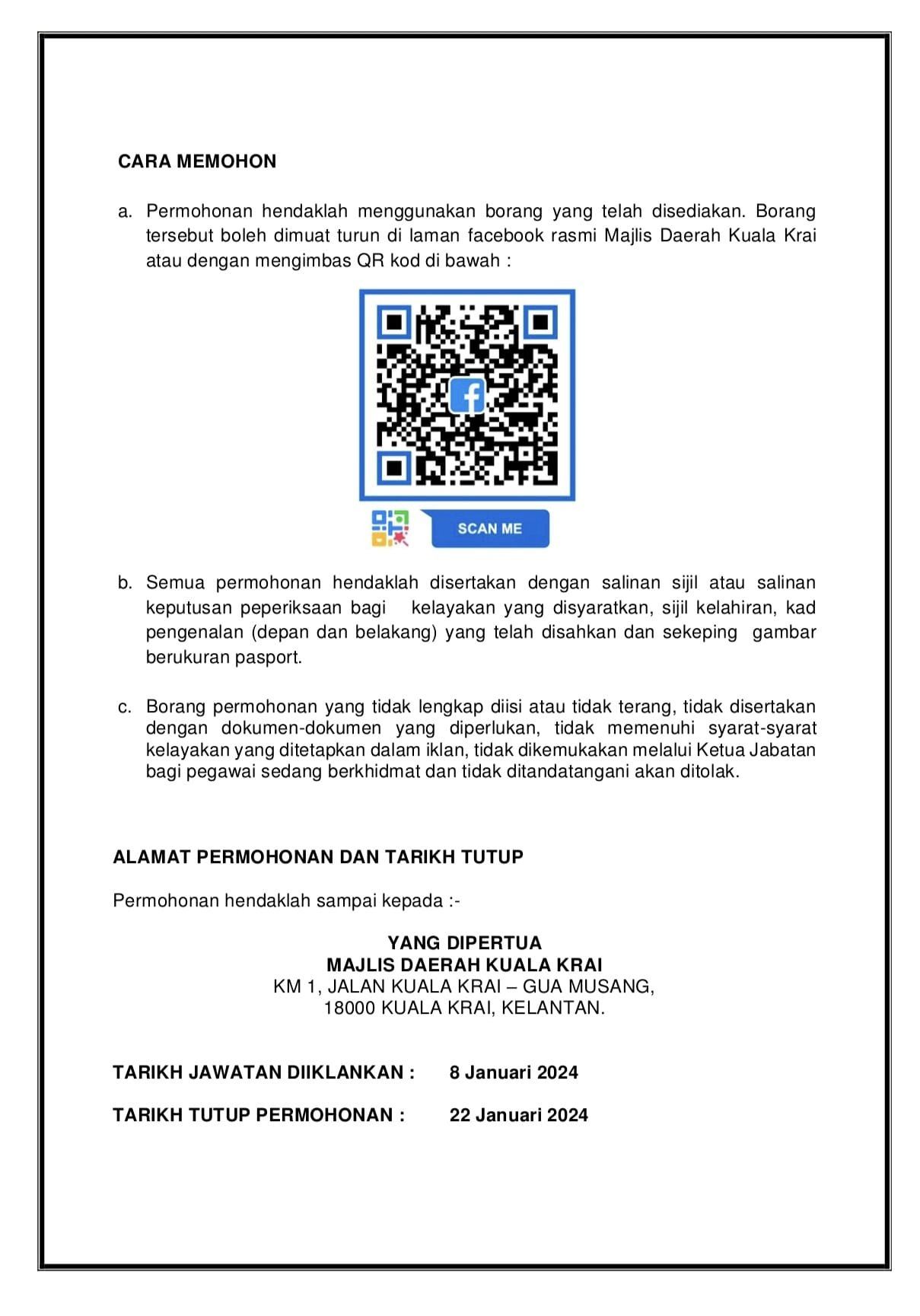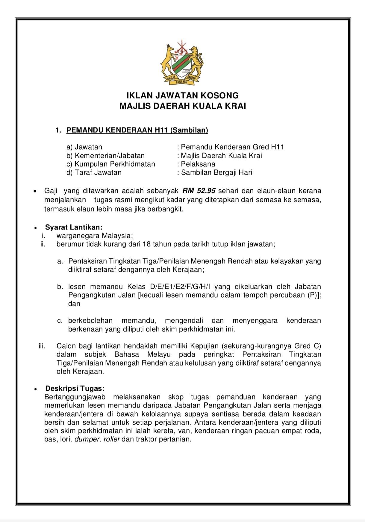 Iklan Jawatan Majlis Daerah Kuala Krai